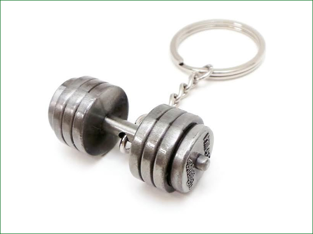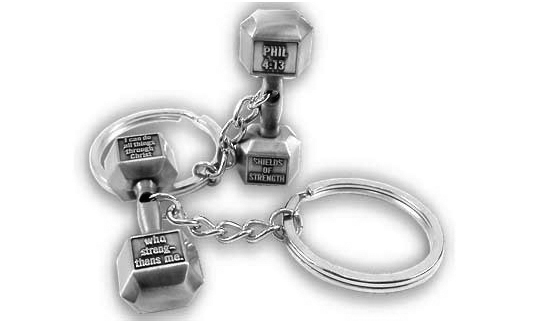 | <ダンベル・キーホルダー> ダンベル型のキーホルダー 側面には聖書の1節が刻まれています |