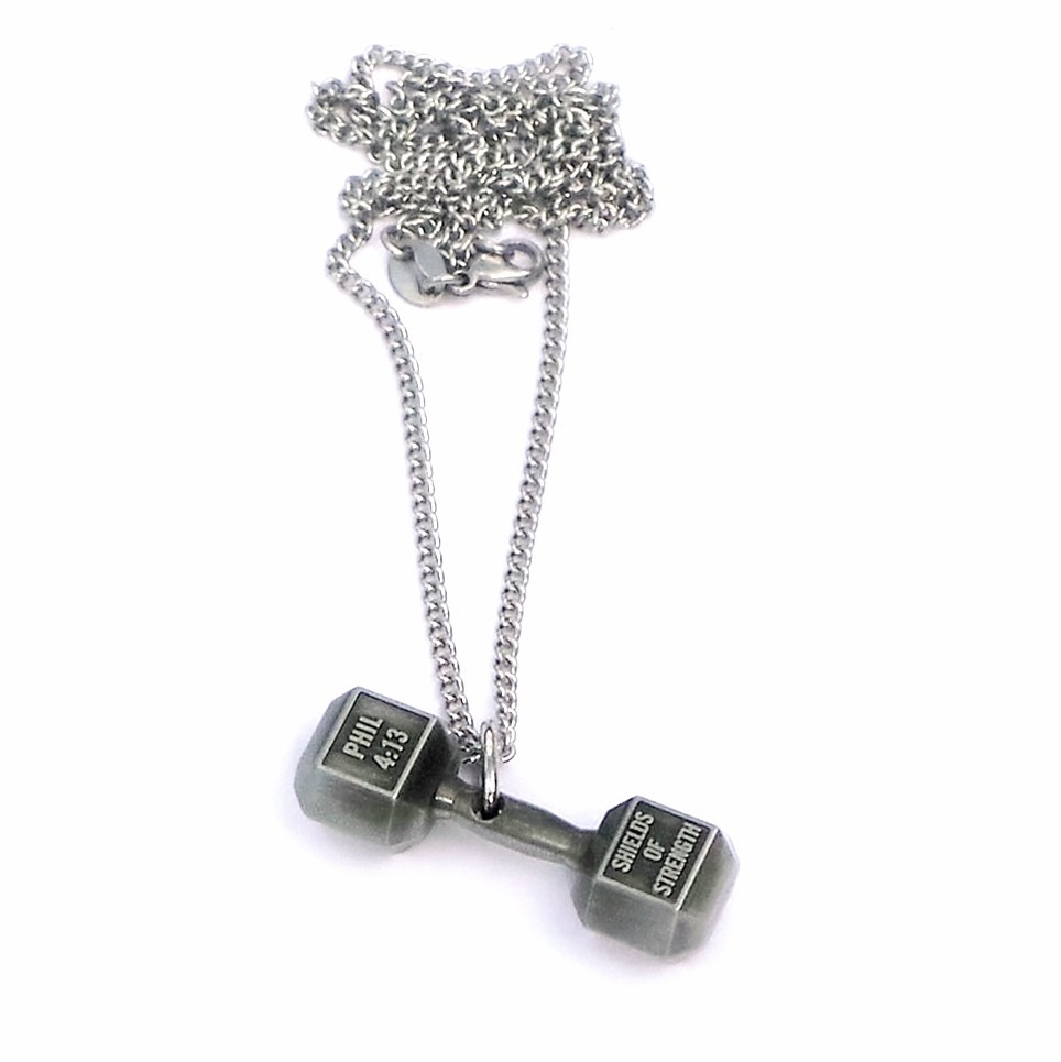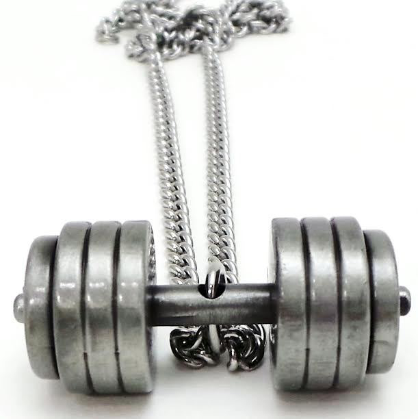 | <ダンベル・ペンダント> ダンベルの部分には聖書の1節が書かれてます |