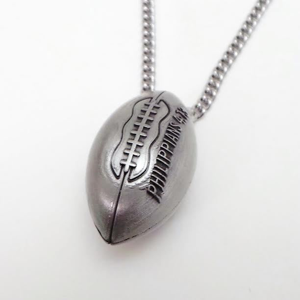 | <フットボール・ペンダント> フットボール型のキーホルダー 側面には聖書の1節が刻まれています |