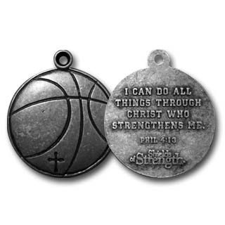 | <バスケットボール・ペンダント> バスケットボール型のキーホルダー 裏面には聖書の1節が刻まれています |
